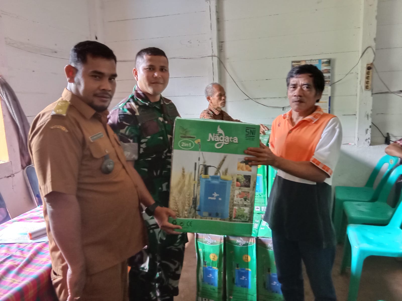 TAPTENG, Sinarlintasnews.com – Babinsa Koramil 05/Kolang, Serda Benni Sitompul bersama Bhabinkamtibmas Polsek Kolang, mendampingi Aparatur Desa menyalurkan berbagai bantuan buat masyarakat. Bantuan tersebut, yakni, Bantuan Langsung Tunai (BLT), insentif Kader Posyandu dan Hand Sprayer (Semprot tanaman).