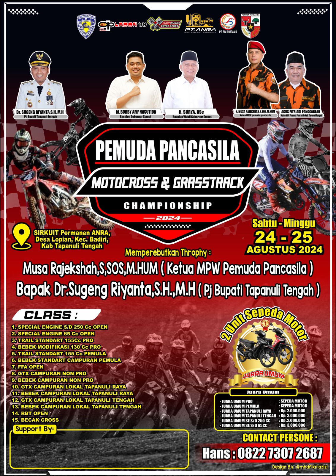 Saksikan aksi memukau para crosser pecinta motorcross dan grasstrack. Datang dan ramaikan acara ini. Jangan lewatkan sensasi adrenalin dan hiburan di acara ini.(Jerry).