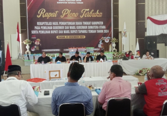 TAPTENG | Komisi Pemilihan Umum (KPU) melaksanakan rekapitulasi Pilkada Tapanuli Tengah yang digelar di Gedung Serbaguna Pandan, Rabu (04/12/2024).