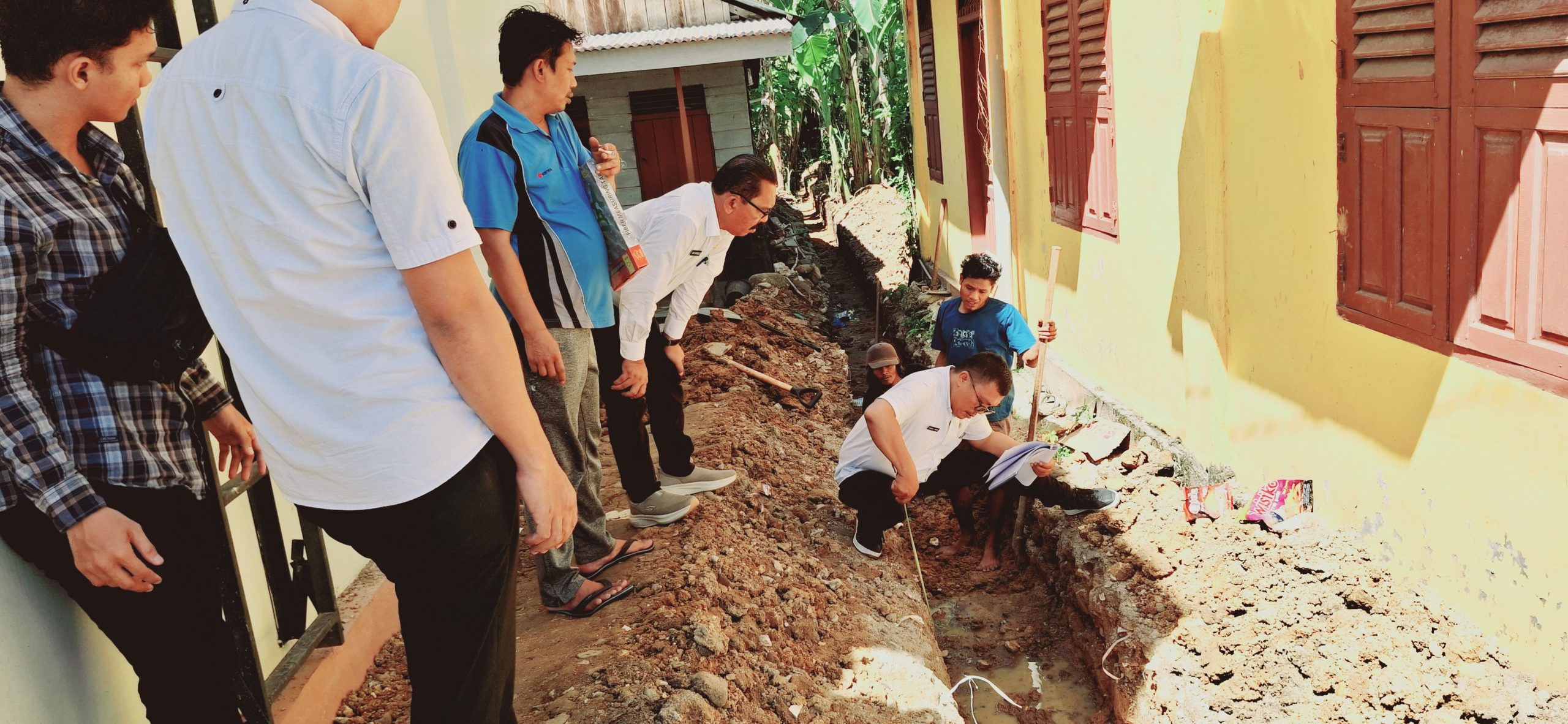 Selain menyaksikan langsung pemgerjaan, Kadis PMD juga mengukur kedalaman, tinggi dan lebar bangunan serta mengecek material yang digunakan.