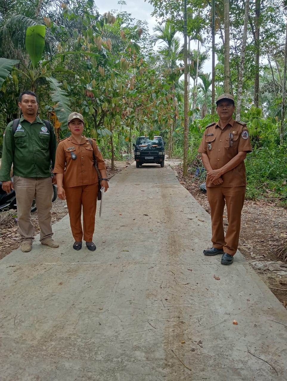 Pengecekan dilakukan di lokasi pembangunan jalan usaha tani yang menghubungkan lahan pertanian warga dengan akses utama desa. Jalan ini sangat vital bagi para petani karena menjadi jalur utama dalam mengangkut hasil panen.