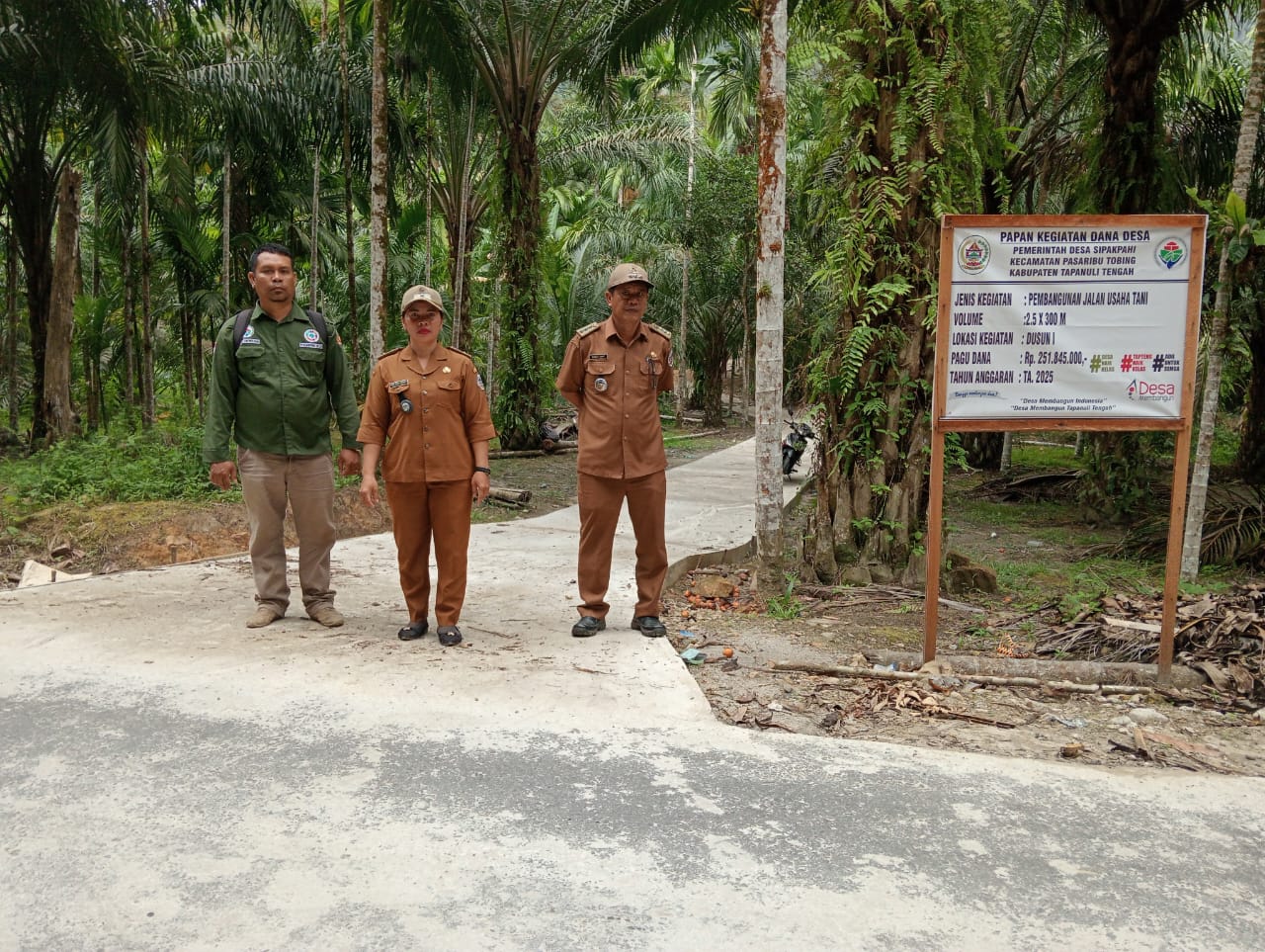 Tapanuli Tengah | Camat Pasaribu Tobing (Pastob), Ridwan Gorat melakukan pengecekan langsung terhadap pembangunan fisik jalan usaha tani yang didanai dari Dana Desa tahun anggaran 2025 di Dusun I Desa Sipakpahi. Kegiatan ini bertujuan untuk memastikan kualitas pembangunan serta kesesuaian dengan perencanaan yang telah disepakati bersama masyarakat.