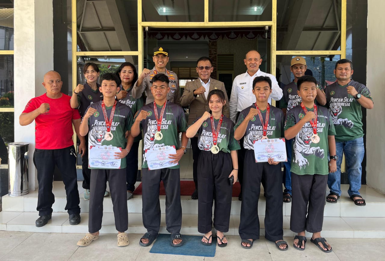 Tapanuli Tengah – Bupati dan wakil Bupati Tapanuli Tengah (Tapteng) Masinton Pasaribu – Mahmud Efendi dan Kapolres AKBP Wahyu Endrajaya, S.IK., M.Si menyambut kedatangan Atlit Pencak Silat Harihilang Peraih Medali Emas Kejuaraan 2nd Internasional Indonesian Student Pencak Silat 2025, bertempat di Kantor Bupati Tapanuli Tengah, Jumat (15/08/2025).