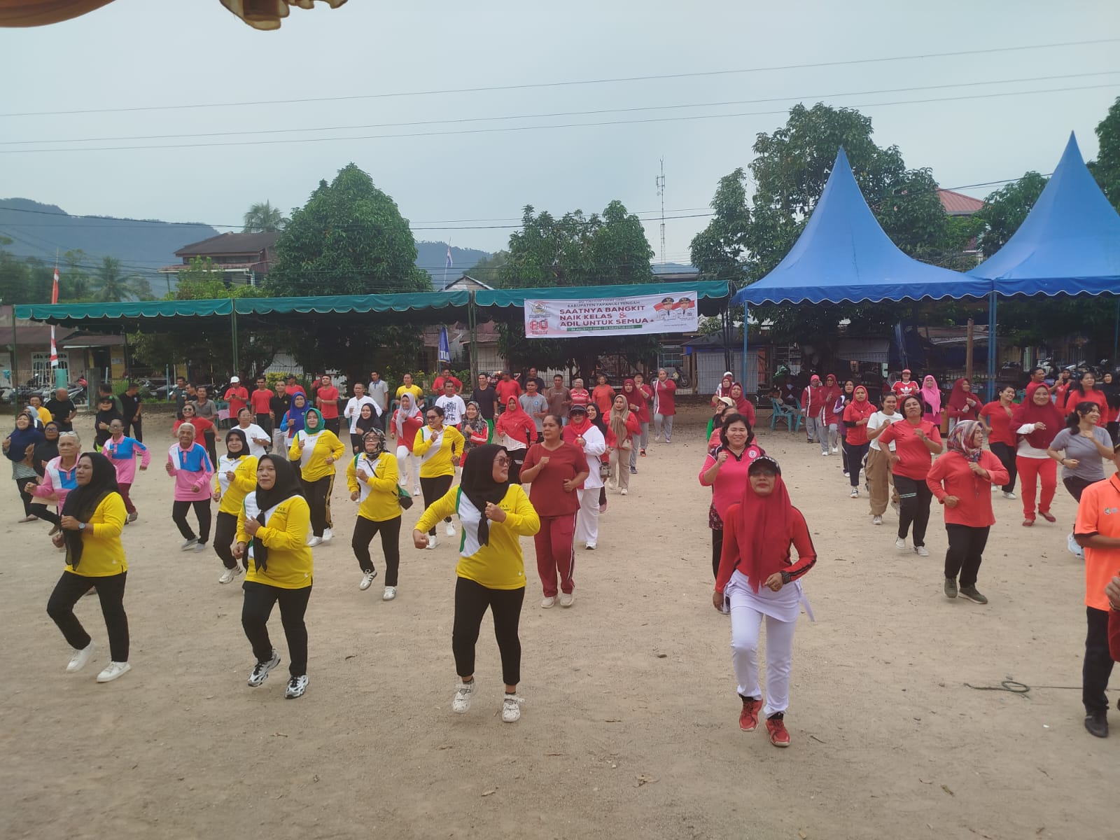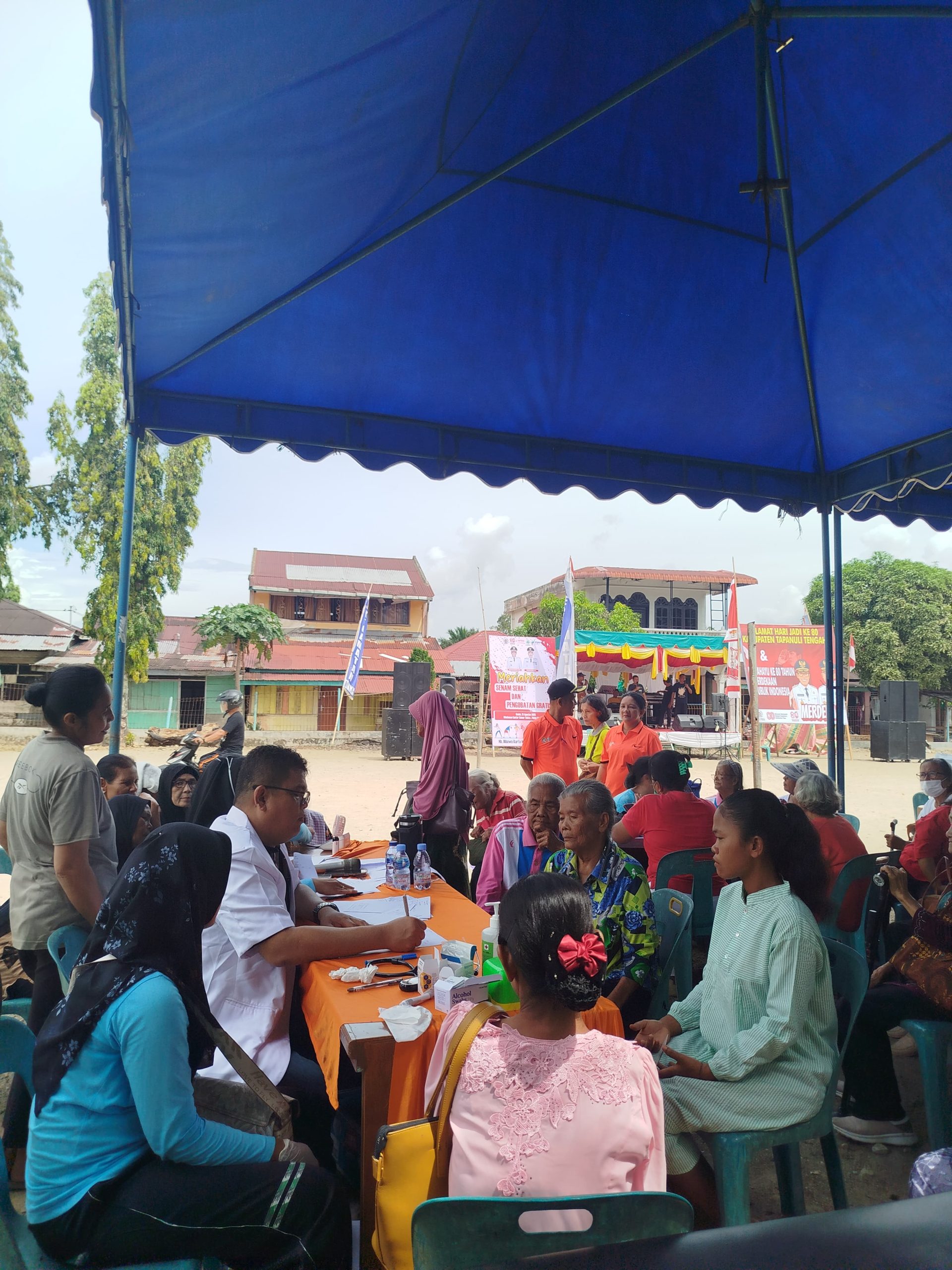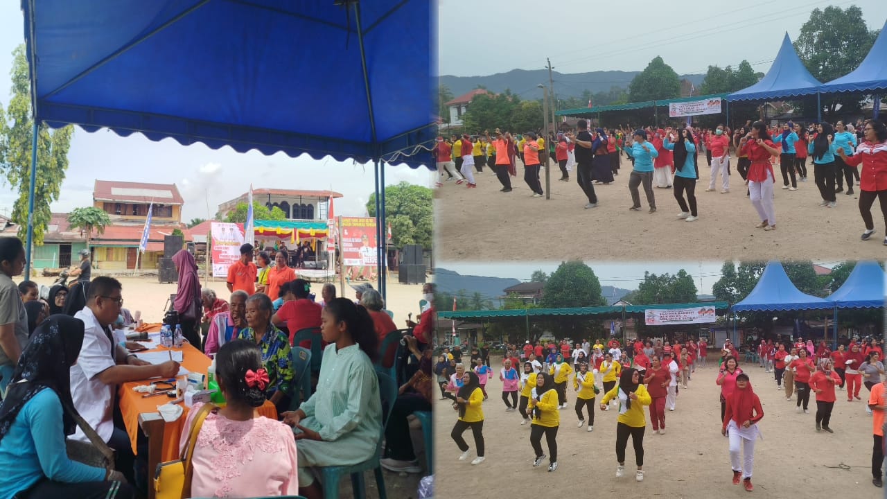Masyarakat tampak antusias mengikuti seluruh rangkaian kegiatan. Senam massal berlangsung meriah dengan partisipasi ratusan warga, sementara layanan pengobatan gratis memberikan kemudahan akses kesehatan bagi masyarakat setempat.