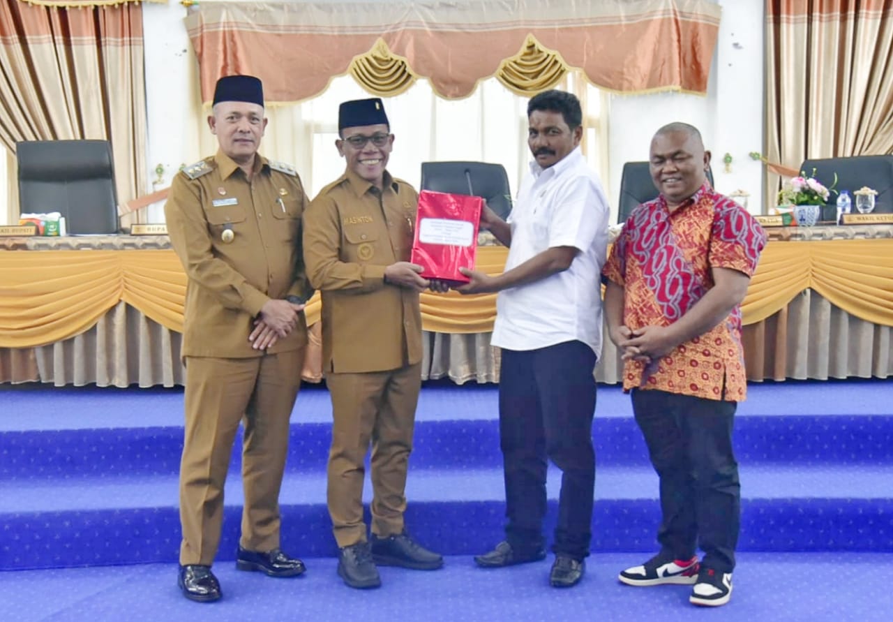 Tapanuli Tengah – Bupati Tapanuli Tengah, Masinton Pasaribu bersama Wakil Bupati Mahmud Efendi menghadiri Rapat Paripurna DPRD Kabupaten Tapanuli Tengah (Tapteng) dalam rangka penyampaian Penjelasan Kepala Daerah terhadap Rancangan Peraturan Daerah (Ranperda) tentang Anggaran Pendapatan dan Belanja Daerah (APBD) Tahun Anggaran 2026, Senin (22/9/2025).