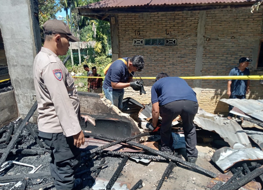 Setibanya di lokasi kejadian, personel Polsek Kolang langsung mengamankan TKP dan memasang garis polisi. Tim Inafis Polres Tapanuli Tengah juga telah melakukan olah TKP dengan mengumpulkan sejumlah barang bukti berupa potongan kayu dan seng sisa pembakaran, serta serpihan meteran listrik.